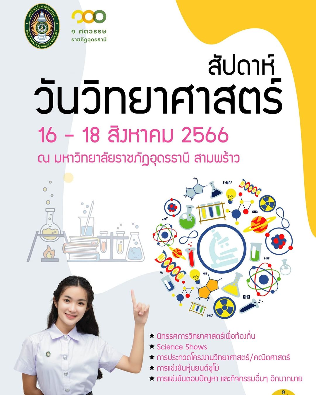 เชิญทุกท่านร่วมงาน “สัปดาห์วันวิทยาศาสตร์” ในวันที่ 16-18 สิงหาคมนี้ ณ อาคารหอประชุมใหญ่ มหาวิทยาลัยราชภัฏอุดรธานี สามพร้าวในงานมีกิจกรรมมากมาย อาทิ การจัดแสดงนิทรรศการผลงานนักศึกษา การเรียนรู้เทคโนโลยี นวัตกรรม การประกวดและแข่งขันทักษะวิทยาศาสตร์ บรรยายทางวิชาการ ชิมช้อปผลิตภัณฑ์ ชมการแสดงดนตรีศิลปวัฒนธรรม และกิจกรรมอื่นๆ ที่น่าสนใจ สำหรับสำนักวิชาศึกษาทั่วไป มีกิจกรรม “GE Challenge” ที่หอประชุมใหญ่ **โซน J** กิจกรรม “GE Challenge” ได้แก่A-Math : กิจกรรมต่อสมการทางคณิตศาสตร์ ครั้งที่ 10 จัดขึ้นในวันที่ 16 สิงหาคม 2566Crossword : กิจกรรมต่อคำศัพท์ภาษาอังกฤษ ครั้งที่ 12 จัดขึ้นในวันที่ 16 สิงหาคม 2566สวดมนต์หมู่ฯ : กิจกรรม เทคนิคการสวดมนต์หมู่ทำนองสรภัญญะ จัดขึ้นในวันที่ 17 สิงหาคม 2566ASEAN Quiz : กิจกรรมการตอบปัญหาความรู้สู่ประชาคมอาเซียน ครั้งที่ 9 จัดขึ้นในวันศุกร์ที่ 18 สิงหาคม 2566แล้วพบกันนะ 82 Tags: GE Challenge
