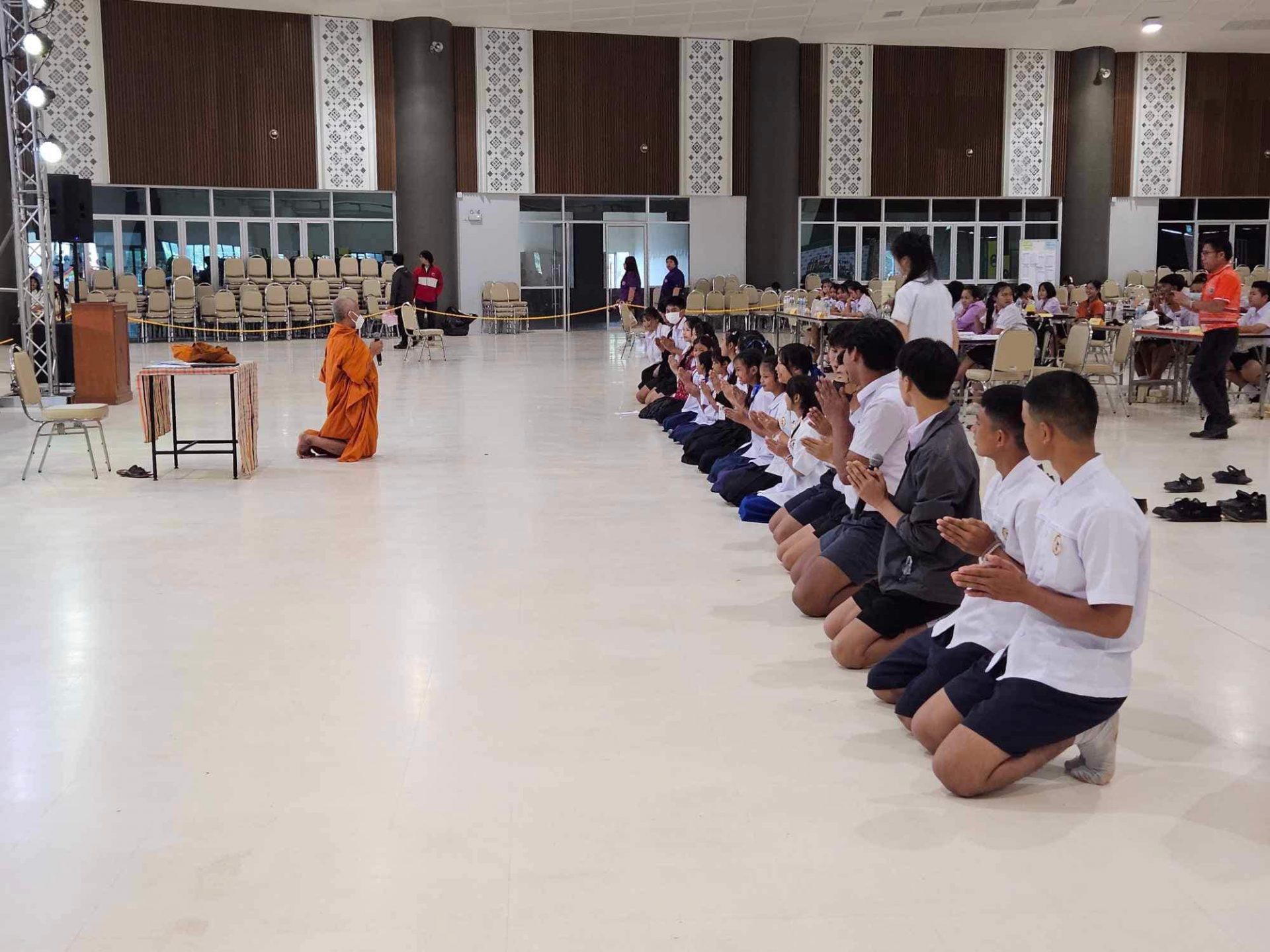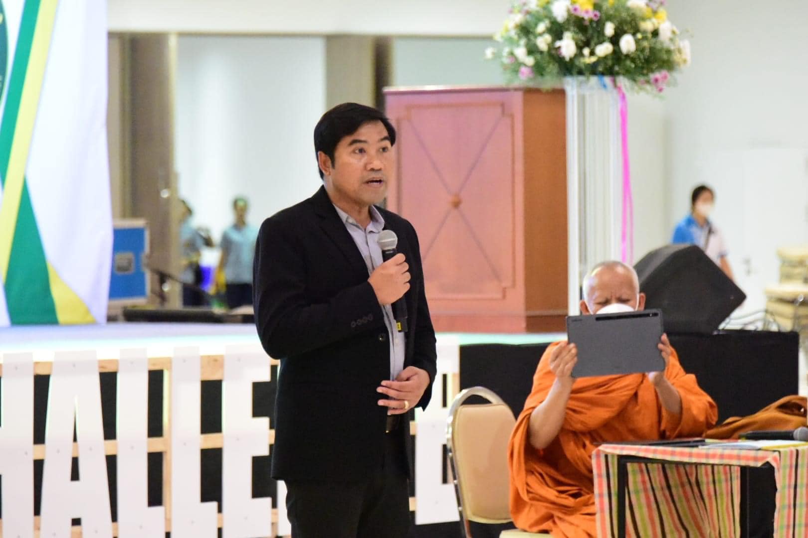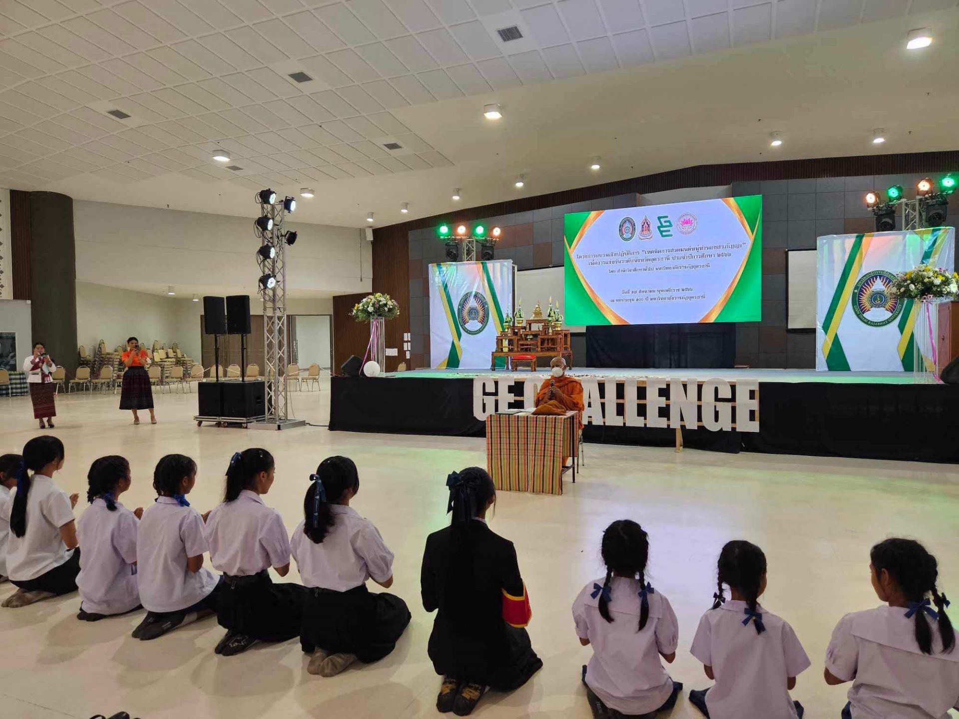 วันที่ 17 สิงหาคม 2566 เวลา 9.30 น. ณ หอประชุมใหญ่ มหาวิทยาลัยราชภัฏอุดรธานี สามพร้าว ผศ.หัสดิน แก้ววิชิต รองผู้อำนวยการสำนักวิชาศึกษาทั่วไป เป็นตัวเเทนผู้อำนวยการสำนักวิชาศึกษาทั่วไป กล่าวรายงานต่อนายธีทัต พิมพา วัฒนธรรมจังหวัดอุดรธานี ที่ให้เกียรติมาเป็นประธานเปิดโครงการอบรมเชิงปฏิบัติการ เรื่องเทคนิคการสวดมนต์หมู่ทำนองสรภัญญะเพื่อการเเข่งขันในระดับจังหวัดอุดรธานี ซึ่งเป็นโครงการที่ฝ่ายส่งเสริมศิลปะและวัฒนธรรม สำนักวิชาศึกษาทั่วไป ร่วมกับ สาขาวิชาพระพุทธศาสนา คณะครุศาสตร์ มหาวิทยาลัยราชภัฏอุดรธานี ได้เล็งเห็นความสำคัญของพันธกิจบริการวิชาการให้แก่สังคม มีวัตถุประสงค์เพื่อสร้างทักษะการสวดมนต์หมู่ทำนองสรภัญญะ อันจะนำไปสู่กระบวนการเรียนรู้ทางเทคนิคในการสวดมนต์เพื่อการเเข่งขันในระดับจังหวัดอุดรธานี