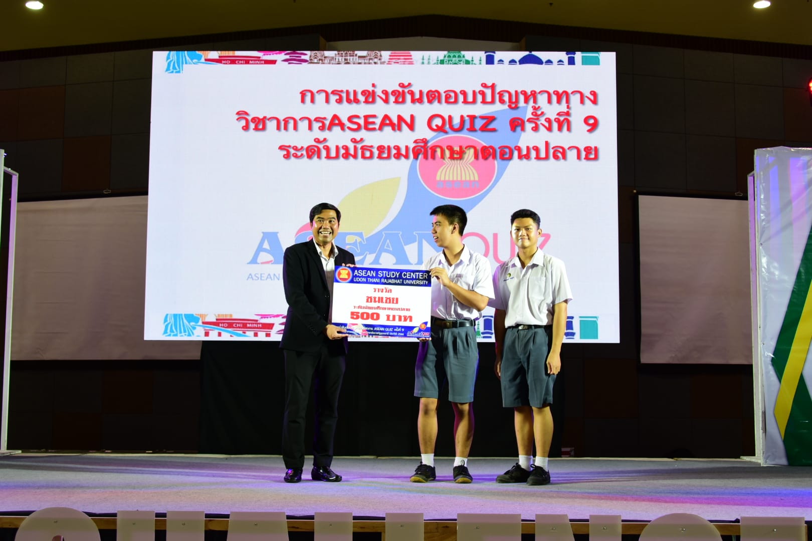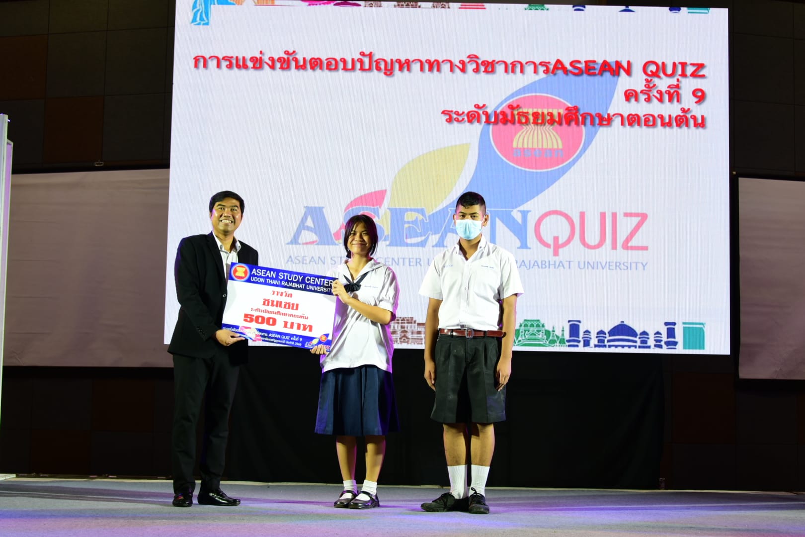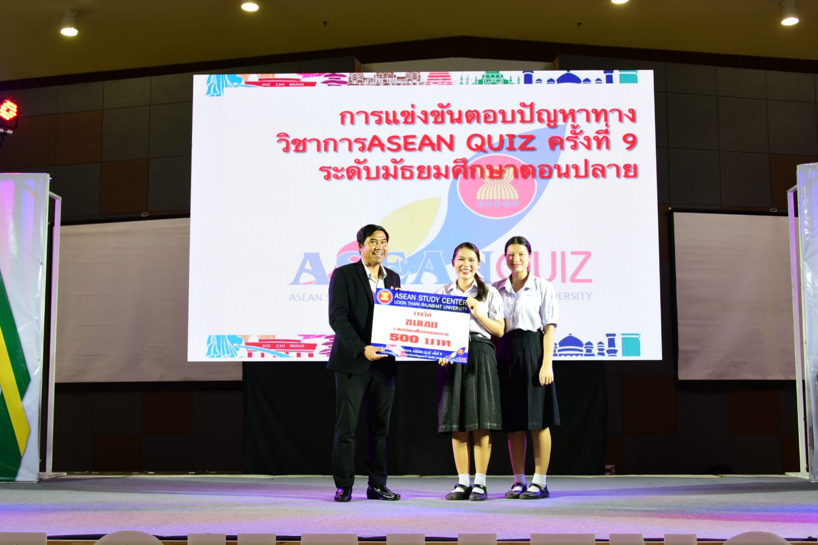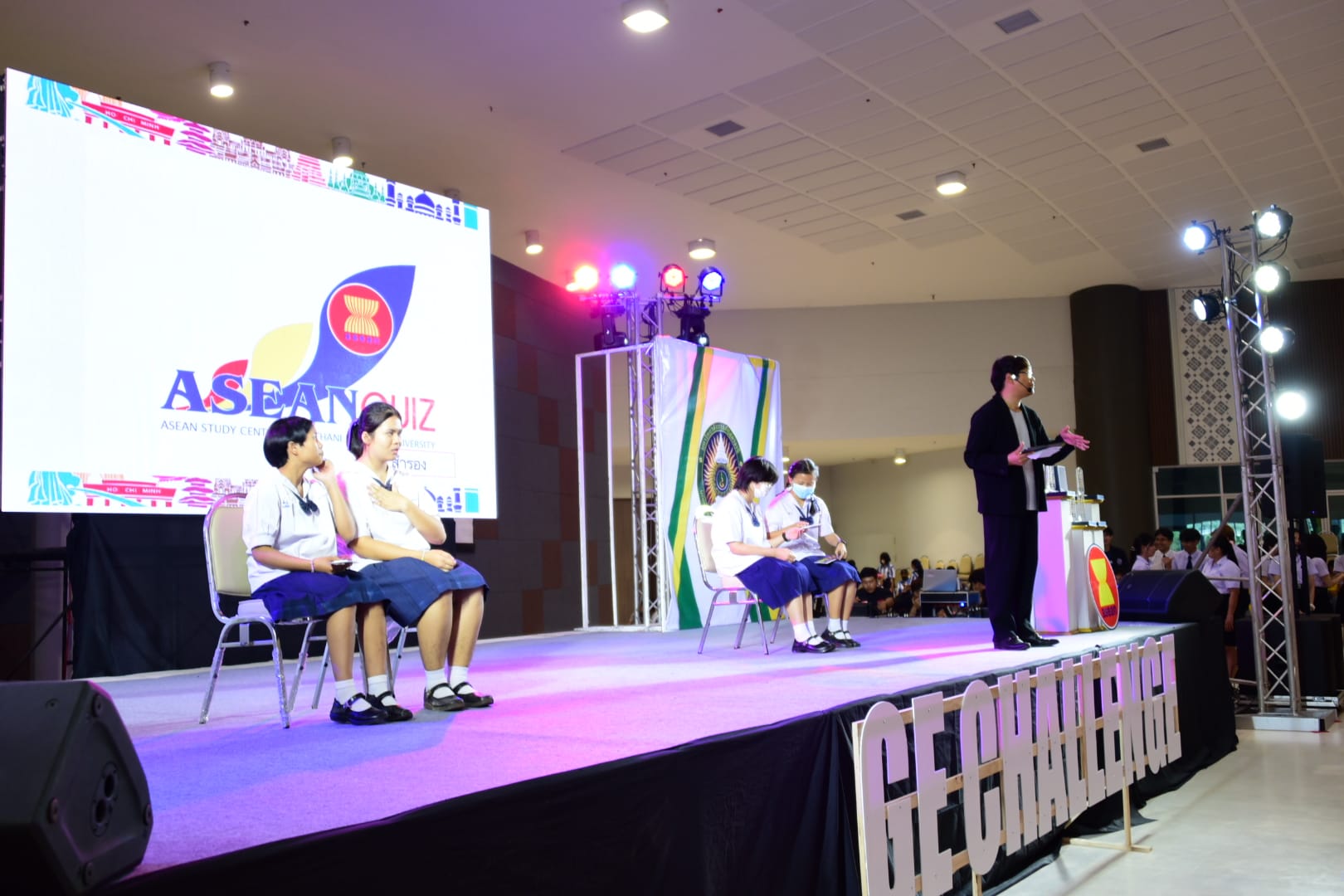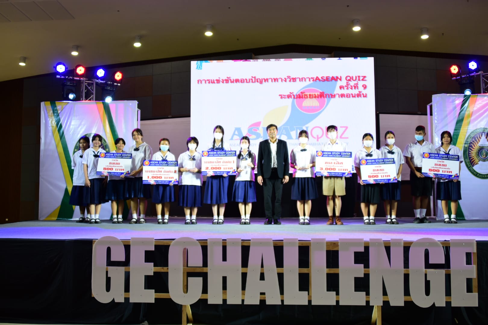 “กิจกรรมการตอบปัญหาความรู้สู่ประชาคมอาเซียน ครั้งที่ 9 (ASEAN QUIZ)”สำนักวิชาศึกษาทั่วไป มหาวิทยาลัยราชภัฏอุดรธานี ได้จัดโครงการ GE Challenge ในสัปดาห์วิทยาศาสตร์แห่งชาติ ณ หอประชุมใหญ่ มหาวิทยาลัยราชภัฏอุดรธานี สามพร้าวโดยในวันที่ 18 สิงหาคม 2566 ได้จัดการแข่งขันการตอบปัญหาทางวิชาการ “กิจกรรมการตอบปัญหาความรู้สู่ประชาคมอาเซียน ครั้งที่ 9 (ASEAN QUIZ)” โดยเชิญโรงเรียนในพื้นที่จังหวัดอุดรธานีและจังหวัดใกล้เคียง เข้าร่วมการแข่งขันทักษะทางวิชาการในครั้งนี้ ทั้งระดับมัธยมศึกษาตอนต้นและมัธยมศึกษาตอนปลายรูปแบบการแข่งขันเป็นการตอบปัญหาโดยการเขียนตอบ เนื้อหาในการแข่งขันประกอบด้วยความรู้ทั้งสามเสาหลักอาเซียน กิจกรรมดังกล่าวได้รับความสนใจและการตอบรับอย่างดีจากโรงเรียนต่าง ๆ ในเขตบริการของมหาวิทยาลัย ผลการแข่งขันสรุปได้ ดังนี้* ระดับชั้นมัธยมศึกษาตอนต้น รางวัลชนะเลิศ : โรงเรียนขอนแก่นวิทยายนรางวัลรองชนะเลิศอันดับ 1 : โรงเรียนเซนต์เมรี่ รางวัลรองชนะเลิศอันดับ 2 : โรงเรียนเซนต์เมรี่รางวัลชมเชย : โรงเรียนบ้านดุงวิทยา โรงเรียนสตรีราชินูทิศ และ โรงเรียนเตรียมอุดมศึกษาพัฒนาการอุดรธานี* ระดับชั้นมัธยมศึกษาตอนปลาย รางวัลชนะเลิศ : โรงเรียนเซนต์เมรีรางวัลรองชนะเลิศอันดับ 1 : โรงเรียนอุดรพิทยานุกูลรางวัลรองชนะเลิศอันดับ 2 : โรงเรียนเตรียมอุดมศึกษาพัฒนาการอุดรธานีรางวัลชมเชย : โรงเรียนสตรีราชินีทิศ โรงเรียนเซนต์เมรี และ โรงเรียนสาธิตมหาวิทยาลัยราชภัฏอุดรธานี 141 Tags: GE Challenge