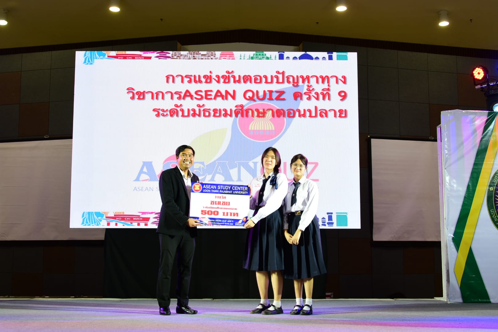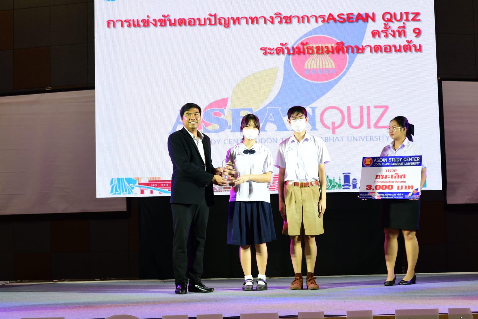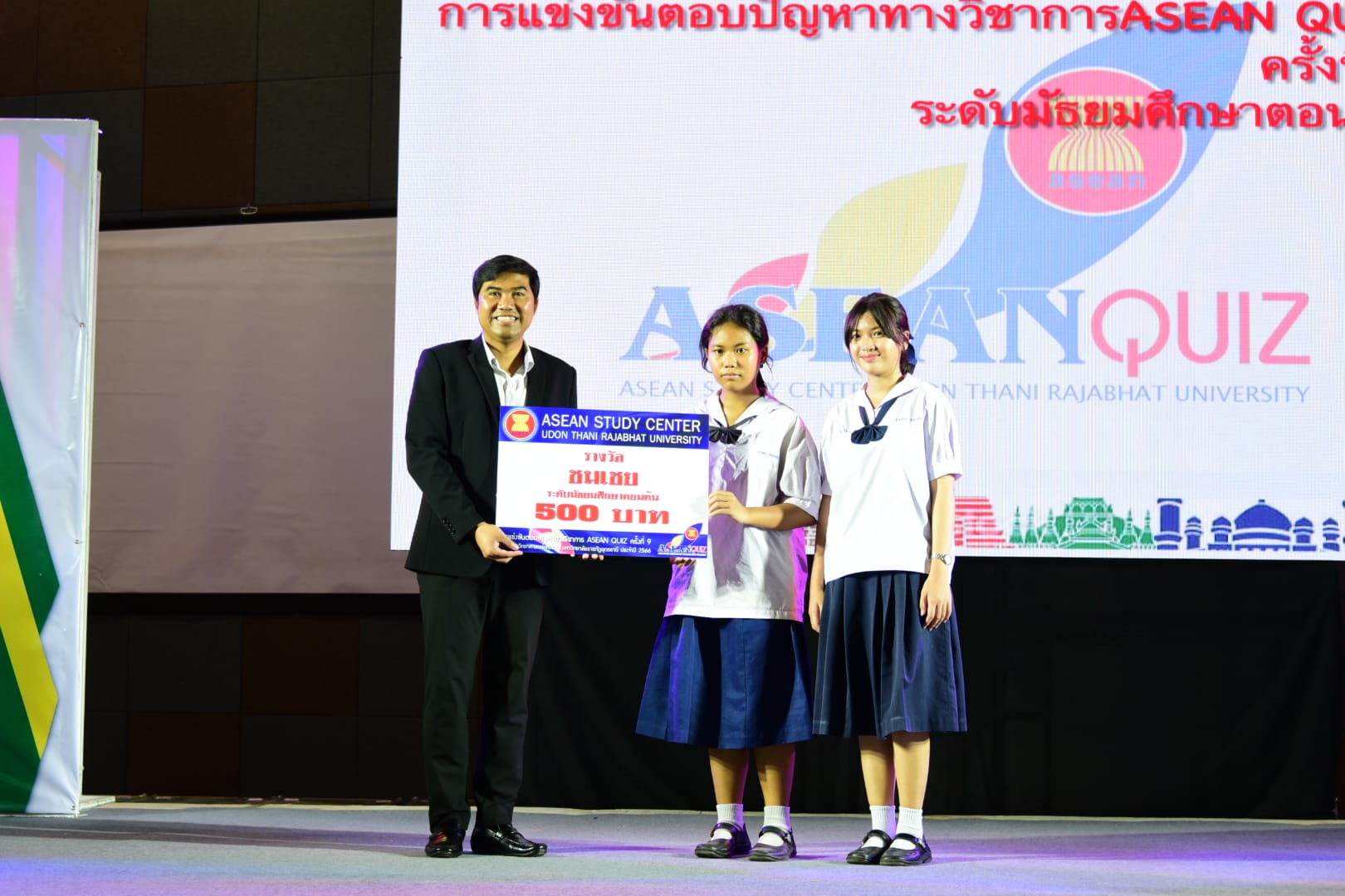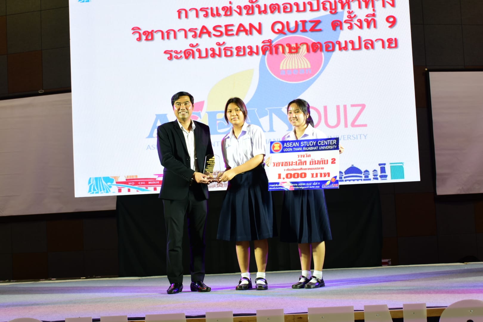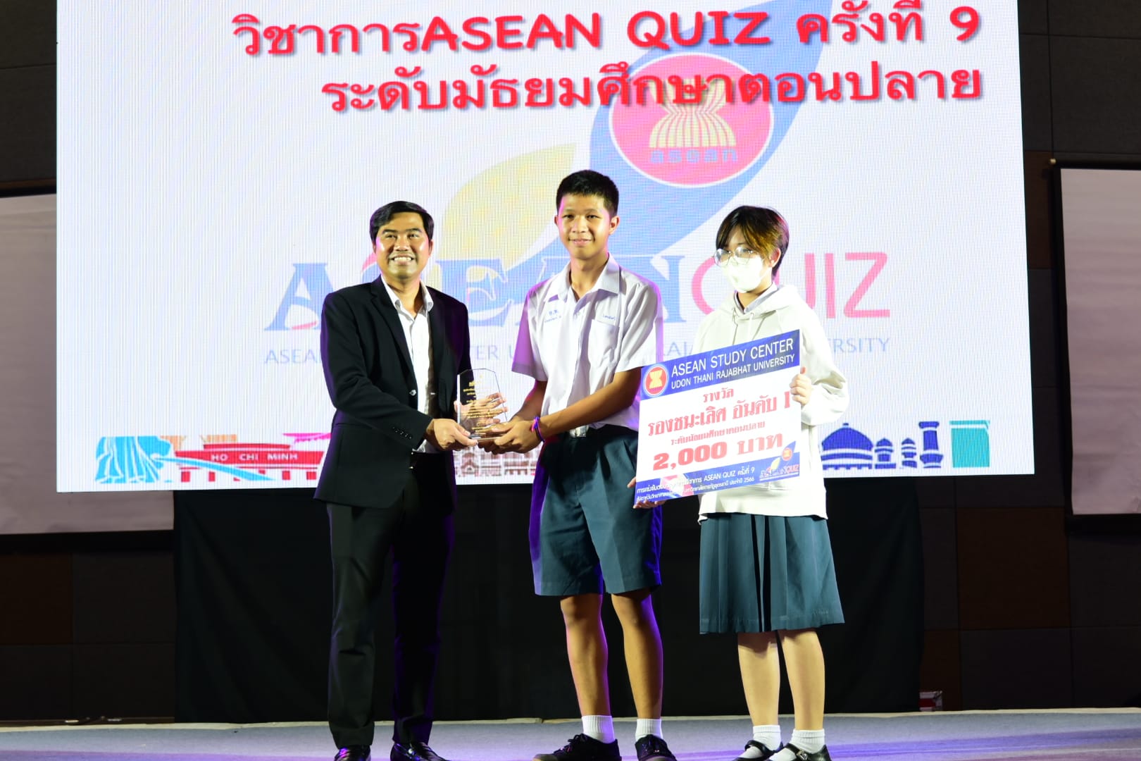 “กิจกรรมการตอบปัญหาความรู้สู่ประชาคมอาเซียน ครั้งที่ 9 (ASEAN QUIZ)”สำนักวิชาศึกษาทั่วไป มหาวิทยาลัยราชภัฏอุดรธานี ได้จัดโครงการ GE Challenge ในสัปดาห์วิทยาศาสตร์แห่งชาติ ณ หอประชุมใหญ่ มหาวิทยาลัยราชภัฏอุดรธานี สามพร้าวโดยในวันที่ 18 สิงหาคม 2566 ได้จัดการแข่งขันการตอบปัญหาทางวิชาการ “กิจกรรมการตอบปัญหาความรู้สู่ประชาคมอาเซียน ครั้งที่ 9 (ASEAN QUIZ)” โดยเชิญโรงเรียนในพื้นที่จังหวัดอุดรธานีและจังหวัดใกล้เคียง เข้าร่วมการแข่งขันทักษะทางวิชาการในครั้งนี้ ทั้งระดับมัธยมศึกษาตอนต้นและมัธยมศึกษาตอนปลายรูปแบบการแข่งขันเป็นการตอบปัญหาโดยการเขียนตอบ เนื้อหาในการแข่งขันประกอบด้วยความรู้ทั้งสามเสาหลักอาเซียน กิจกรรมดังกล่าวได้รับความสนใจและการตอบรับอย่างดีจากโรงเรียนต่าง ๆ ในเขตบริการของมหาวิทยาลัย ผลการแข่งขันสรุปได้ ดังนี้* ระดับชั้นมัธยมศึกษาตอนต้น รางวัลชนะเลิศ : โรงเรียนขอนแก่นวิทยายนรางวัลรองชนะเลิศอันดับ 1 : โรงเรียนเซนต์เมรี่ รางวัลรองชนะเลิศอันดับ 2 : โรงเรียนเซนต์เมรี่รางวัลชมเชย : โรงเรียนบ้านดุงวิทยา โรงเรียนสตรีราชินูทิศ และ โรงเรียนเตรียมอุดมศึกษาพัฒนาการอุดรธานี* ระดับชั้นมัธยมศึกษาตอนปลาย รางวัลชนะเลิศ : โรงเรียนเซนต์เมรีรางวัลรองชนะเลิศอันดับ 1 : โรงเรียนอุดรพิทยานุกูลรางวัลรองชนะเลิศอันดับ 2 : โรงเรียนเตรียมอุดมศึกษาพัฒนาการอุดรธานีรางวัลชมเชย : โรงเรียนสตรีราชินีทิศ โรงเรียนเซนต์เมรี และ โรงเรียนสาธิตมหาวิทยาลัยราชภัฏอุดรธานี 141 Tags: GE Challenge