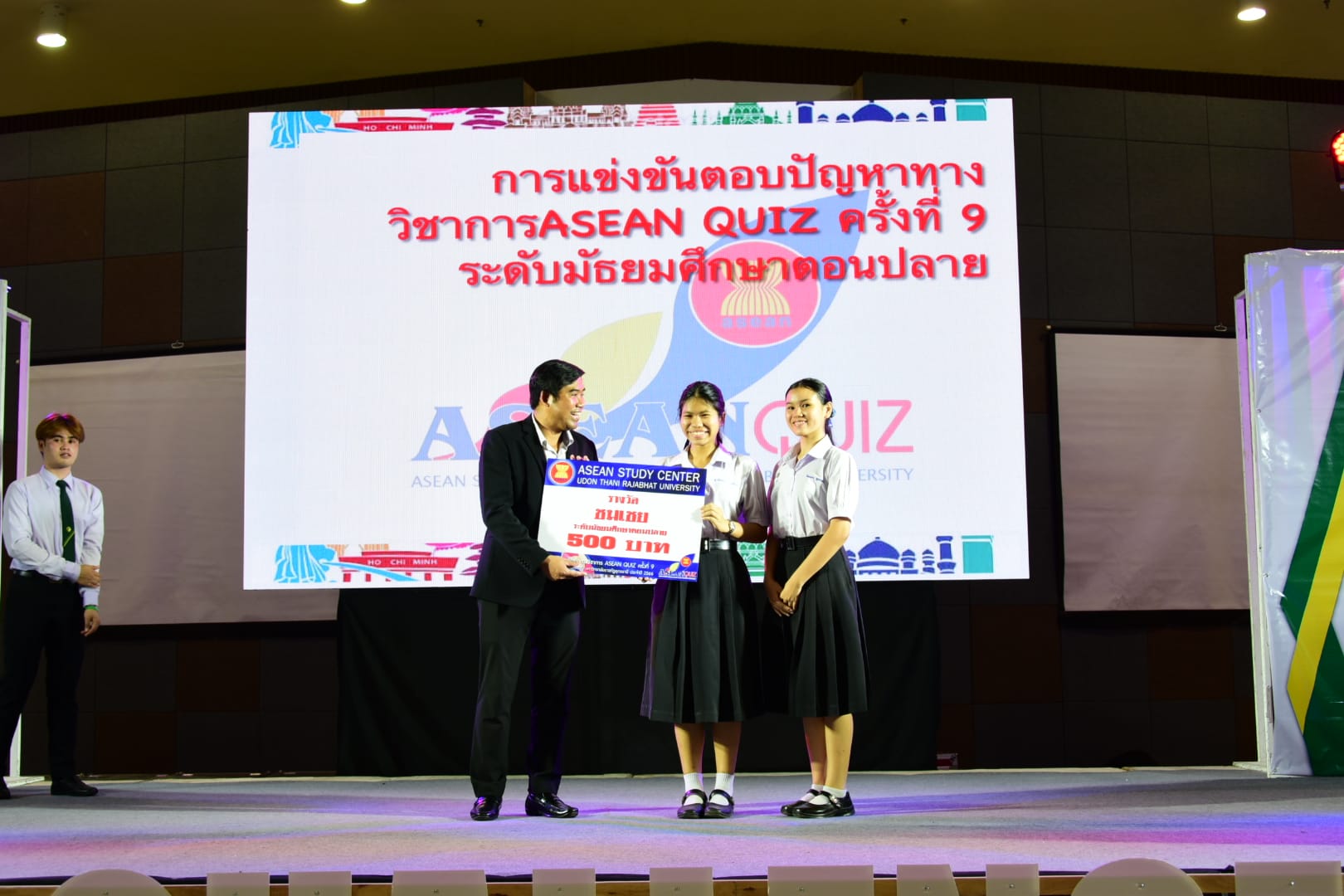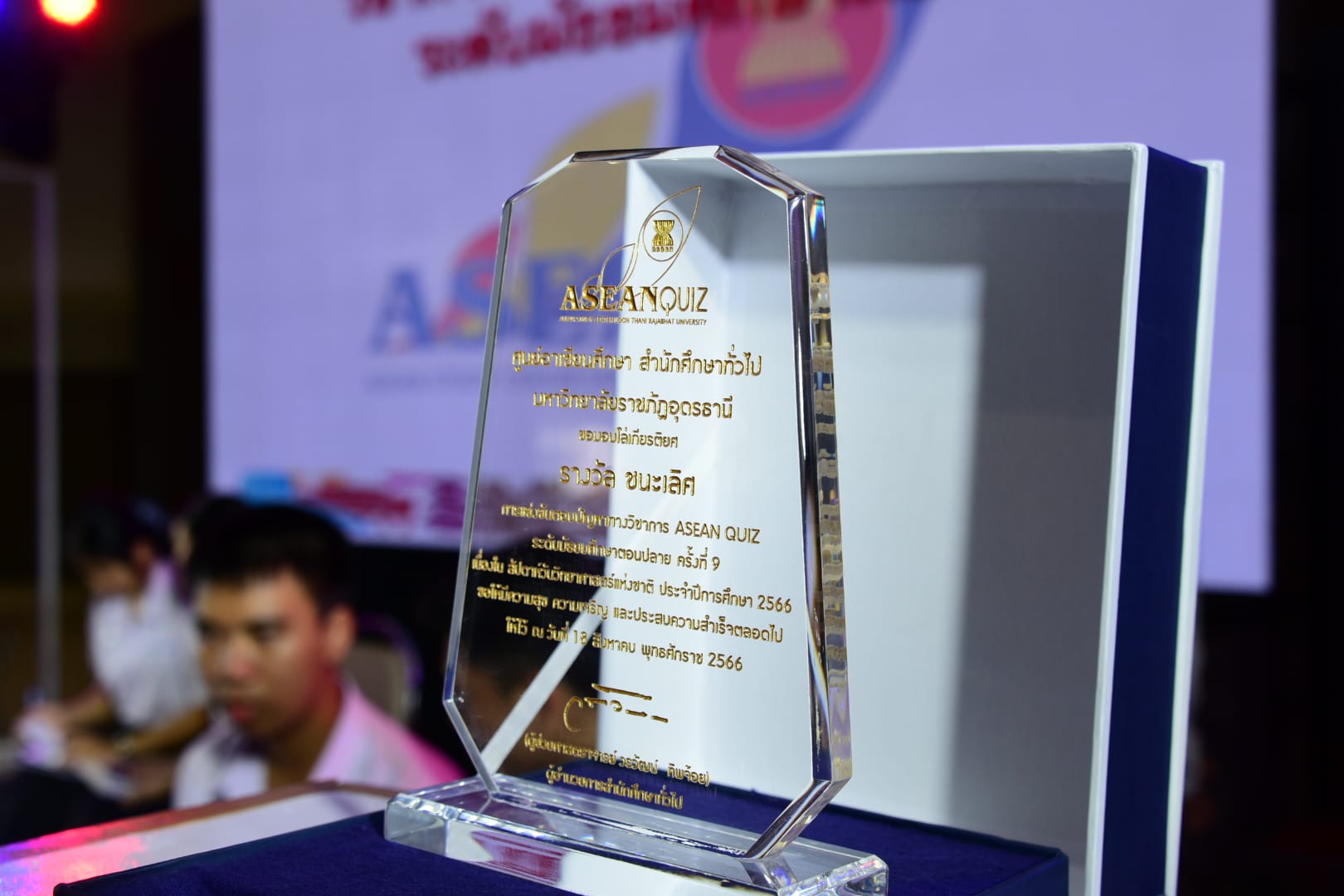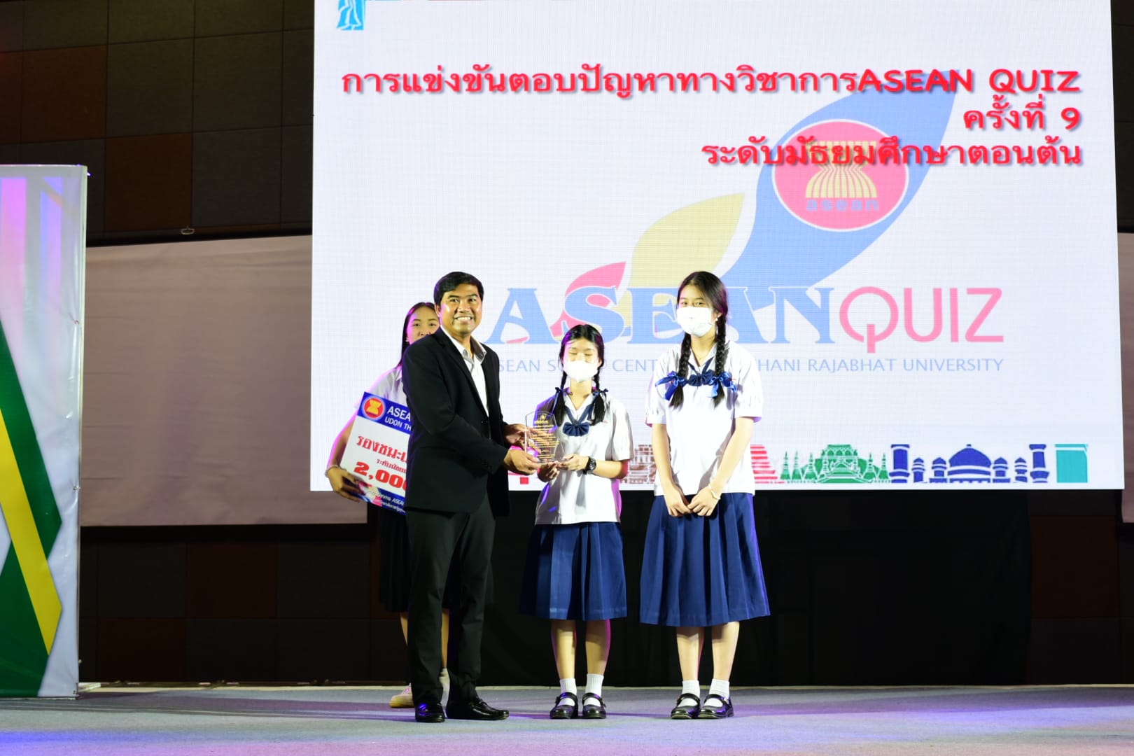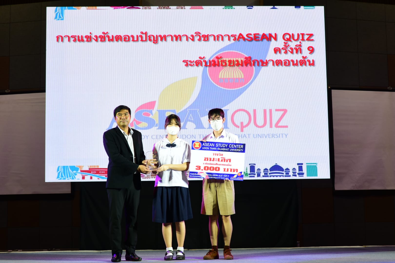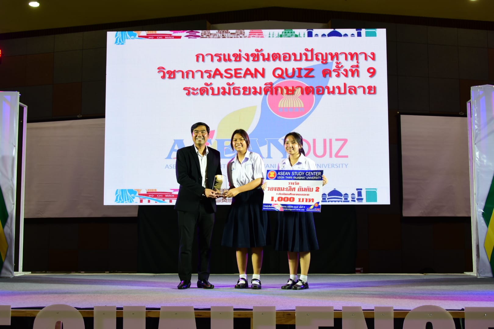 “กิจกรรมการตอบปัญหาความรู้สู่ประชาคมอาเซียน ครั้งที่ 9 (ASEAN QUIZ)”สำนักวิชาศึกษาทั่วไป มหาวิทยาลัยราชภัฏอุดรธานี ได้จัดโครงการ GE Challenge ในสัปดาห์วิทยาศาสตร์แห่งชาติ ณ หอประชุมใหญ่ มหาวิทยาลัยราชภัฏอุดรธานี สามพร้าวโดยในวันที่ 18 สิงหาคม 2566 ได้จัดการแข่งขันการตอบปัญหาทางวิชาการ “กิจกรรมการตอบปัญหาความรู้สู่ประชาคมอาเซียน ครั้งที่ 9 (ASEAN QUIZ)” โดยเชิญโรงเรียนในพื้นที่จังหวัดอุดรธานีและจังหวัดใกล้เคียง เข้าร่วมการแข่งขันทักษะทางวิชาการในครั้งนี้ ทั้งระดับมัธยมศึกษาตอนต้นและมัธยมศึกษาตอนปลายรูปแบบการแข่งขันเป็นการตอบปัญหาโดยการเขียนตอบ เนื้อหาในการแข่งขันประกอบด้วยความรู้ทั้งสามเสาหลักอาเซียน กิจกรรมดังกล่าวได้รับความสนใจและการตอบรับอย่างดีจากโรงเรียนต่าง ๆ ในเขตบริการของมหาวิทยาลัย ผลการแข่งขันสรุปได้ ดังนี้* ระดับชั้นมัธยมศึกษาตอนต้น รางวัลชนะเลิศ : โรงเรียนขอนแก่นวิทยายนรางวัลรองชนะเลิศอันดับ 1 : โรงเรียนเซนต์เมรี่ รางวัลรองชนะเลิศอันดับ 2 : โรงเรียนเซนต์เมรี่รางวัลชมเชย : โรงเรียนบ้านดุงวิทยา โรงเรียนสตรีราชินูทิศ และ โรงเรียนเตรียมอุดมศึกษาพัฒนาการอุดรธานี* ระดับชั้นมัธยมศึกษาตอนปลาย รางวัลชนะเลิศ : โรงเรียนเซนต์เมรีรางวัลรองชนะเลิศอันดับ 1 : โรงเรียนอุดรพิทยานุกูลรางวัลรองชนะเลิศอันดับ 2 : โรงเรียนเตรียมอุดมศึกษาพัฒนาการอุดรธานีรางวัลชมเชย : โรงเรียนสตรีราชินีทิศ โรงเรียนเซนต์เมรี และ โรงเรียนสาธิตมหาวิทยาลัยราชภัฏอุดรธานี 141 Tags: GE Challenge