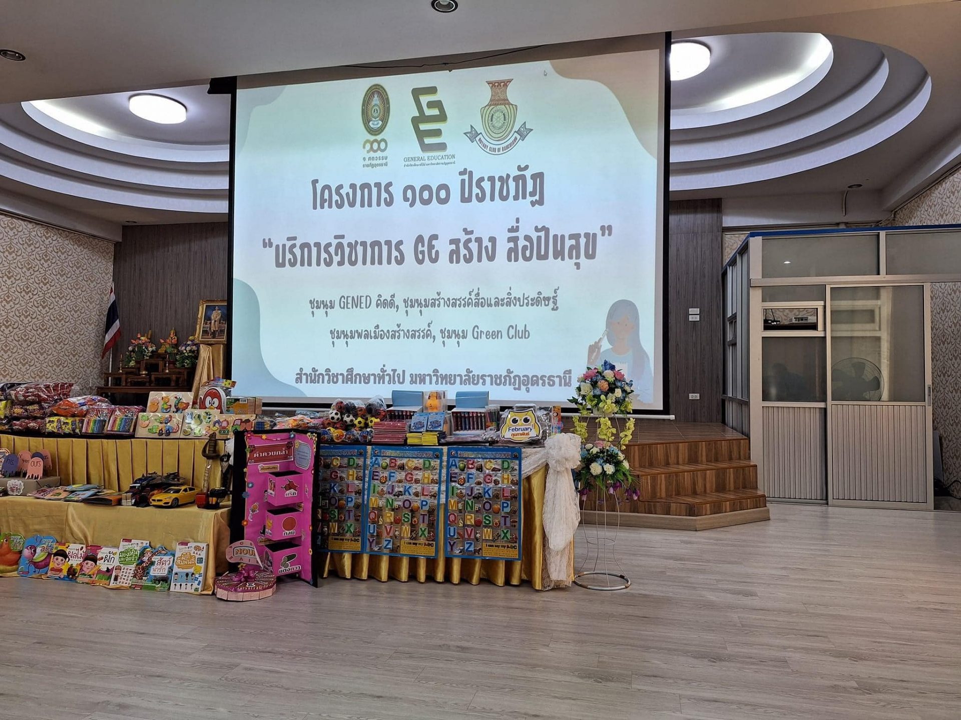 วันที่ 22 สิงหาคม 2566 ผศ.วรวัฒน์ ทิพจ้อย ผู้อำนวยการสำนักวิชาศึกษาทั่วไป พร้อมด้วยชุมนุม GENED คิดดี, ชุมนุมสร้างสรรค์สื่อและสิ่งประดิษฐ์, ชุมนุมพลเมืองสร้างสรรค์ และชุมนุม Green Club ซึ่งเป็นชุมนุมในสังกัดสำนักวิชาศึกษาทั่วไปมหาวิทยาลัยราชภัฏอุดรธานี จัดกิจกรรมมอบสื่อการเรียนรู้ ภายใต้โครงการ 100 ปีราชภัฏ “บริการวิชาการ GE สร้างสื่อปันสุข”