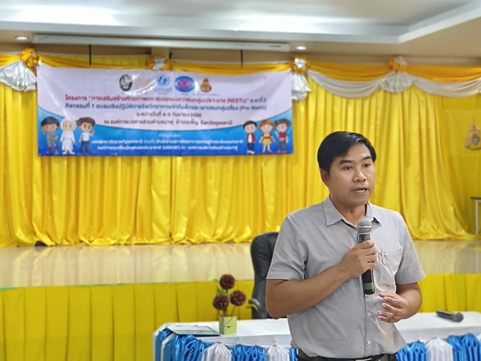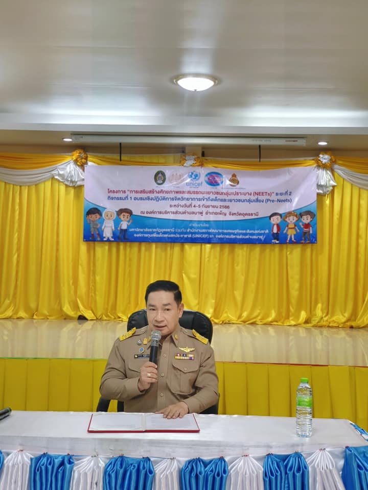 วันที่ 4 – 5 กันยายน 2566 โครงการเสริมสร้างศักยภาพและสมรรถนะเยาวชนกลุ่มเปราะบาง ระยะที่ 2 พื้นที่ตำบลนาพู่ อำเภอเพ็ญ จังหวัดอุดรธานี ได้จัดกิจกรรมอบรมเชิงปฏิบัติการจิตวิทยาการเข้าถึงเยาวชนกลุ่ม Pre NEET ณ ห้องประชุมองค์การบริหารส่วนตำบลนาพู่ อำเภอเพ็ญจังหวัด จังหวัดอุดรธานี