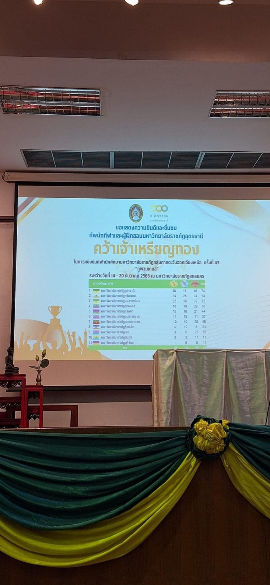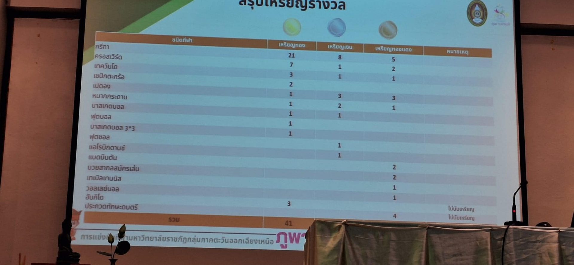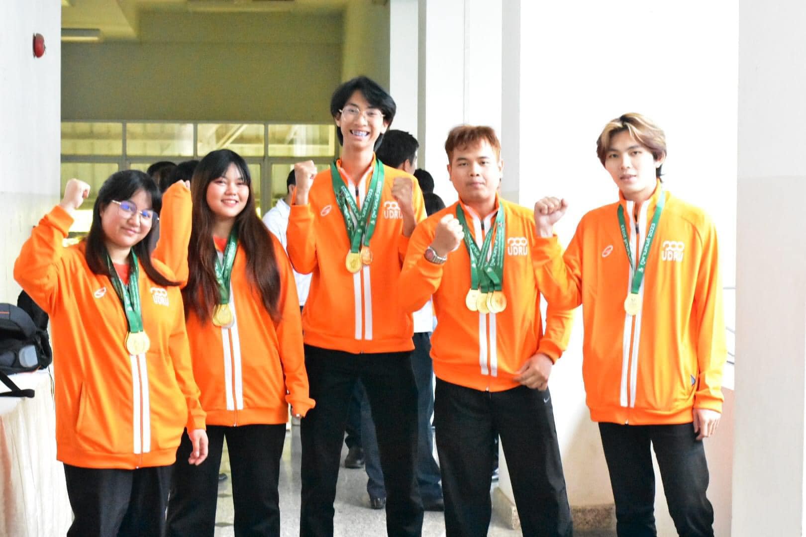 วันที่ 27 ธันวาคม 2566 ณ ห้องประชุม 1 อาคารเฉลิมพระเกียรติฯ อ.ปิยนุช โทมล อาจารย์สาขาวิชาภาษาอังกฤษ ผู้ฝึกสอนนักกีฬาครอสเวิร์ด สำนักวิชาศึกษาทั่วไป มหาวิทยาลัยราชภัฏอุดรธานี เข้าร่วมประชุมสรุป การแข่งขันกีฬามหาวิทยาลัยราชภัฏกลุ่มภาคตะวันออกเฉียงเหนือ ภูพานเกมส์ ซึ่งในที่ประชุมได้มีการแสดงความยินดีและชื่นชม ทัพนักกีฬาและผู้ฝึกสอนนักกีฬา มหาวิทยาลัยราชภัฏอุดรธานี ที่ได้ตำแหน่งเจ้าเหรียญทอง ในการแข่งขันกีฬานักศึกษามหาวิทยาลัยราชภัฏกลุ่มภาคตะวันออกเฉียงเหนือ ครั้งที่ 43 ภูพานเกมส์ ระหว่างวันที่ 14-20 ธันวาคม 2566 ณ มหาวิทยาลัยราชภัฏสกลนคร โดยทางมหาวิทยาลัยฯ ได้เหรียญทั้งหมด 74 เหรียญ ได้เหรียญรางวัลมากที่สุด เป็นอันดับที่ 1 เป็นเจ้าเหรียญรางวัลในการแข่งขันครั้งนี้ โดยแบ่งเป็นเหรียญทอง 38 เหรียญ เหรียญเงิน 18 เหรียญ และเหรียญทองแดง 18 เหรียญ 12