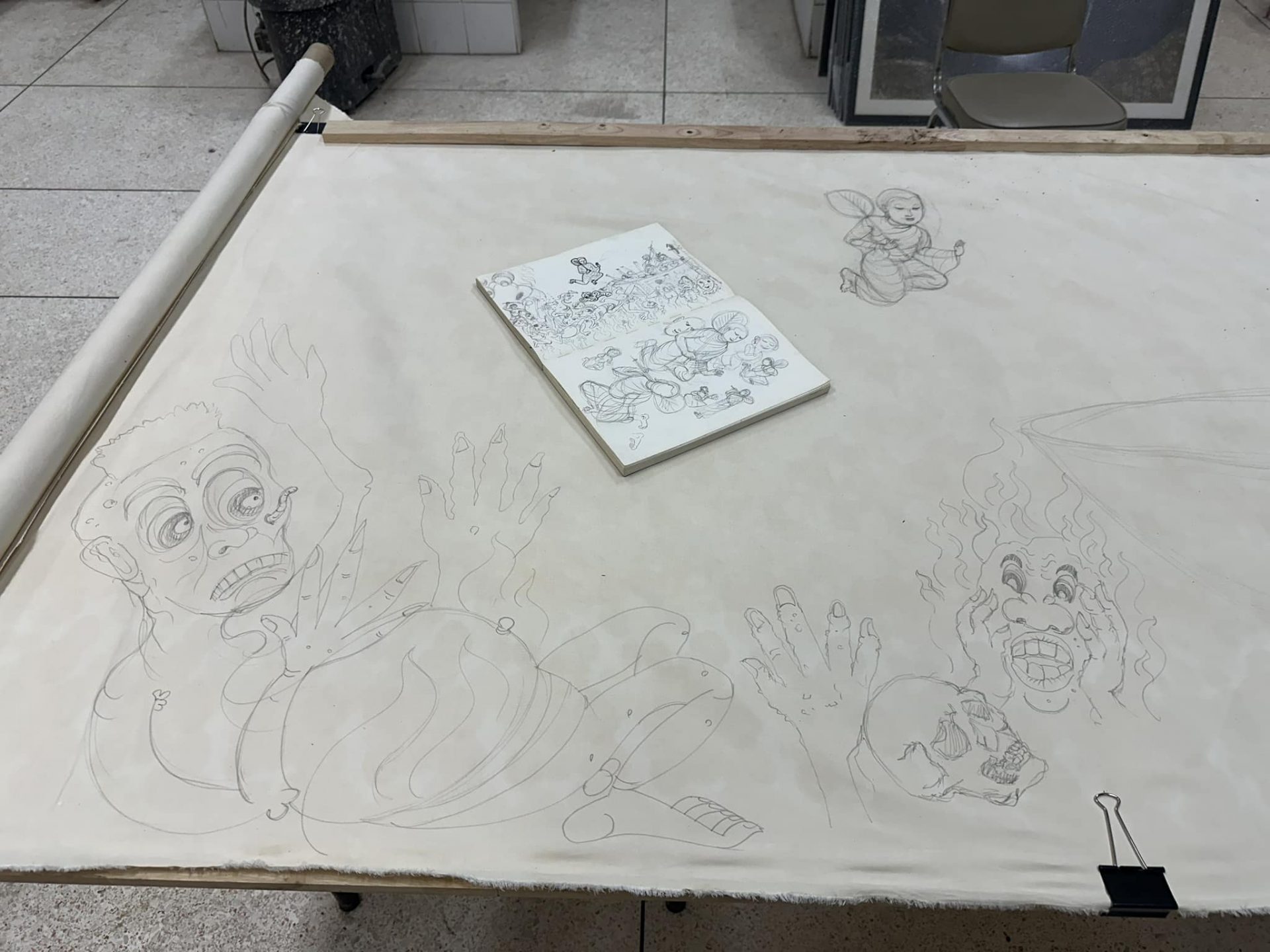 รศ.ดร.ชวลิต อธิปัตยกุล เริ่มร่างภาพในชุดแรกคือ มาลัยหมื่น พระมาลัยเมื่อในอดีตได้เคยไปโปรดสัตว์ในนรกและได้นำเรื่องราวของสัตว์นรกมาบอกบุญต่อผู้ในในโลกมนุษย์ ให้เน้นย้ำเรื่องการทำบุญ การอุทิศส่วนกุศล จะได้พ้นทุกข์ไม่เป็นเหมือนกับที่เห็นอยู่ในนรก อนุโมทนาผลบุญ เฉกเช่นเดียวกับผู้ร่วมบริจาคทานในการเขียนภาพผ้าผะเหวด อีกทั้งได้ชื่อว่าเป็นผู้ยึดมั่นในการสืบทอดพระพุทธศาสนา