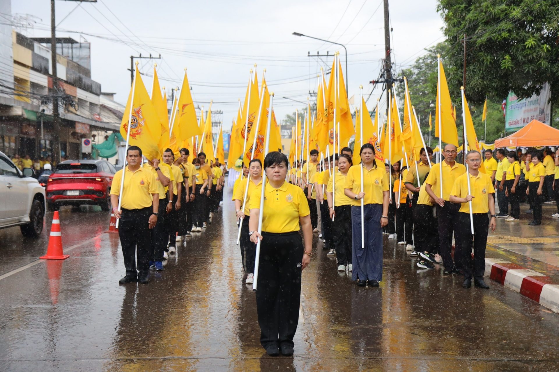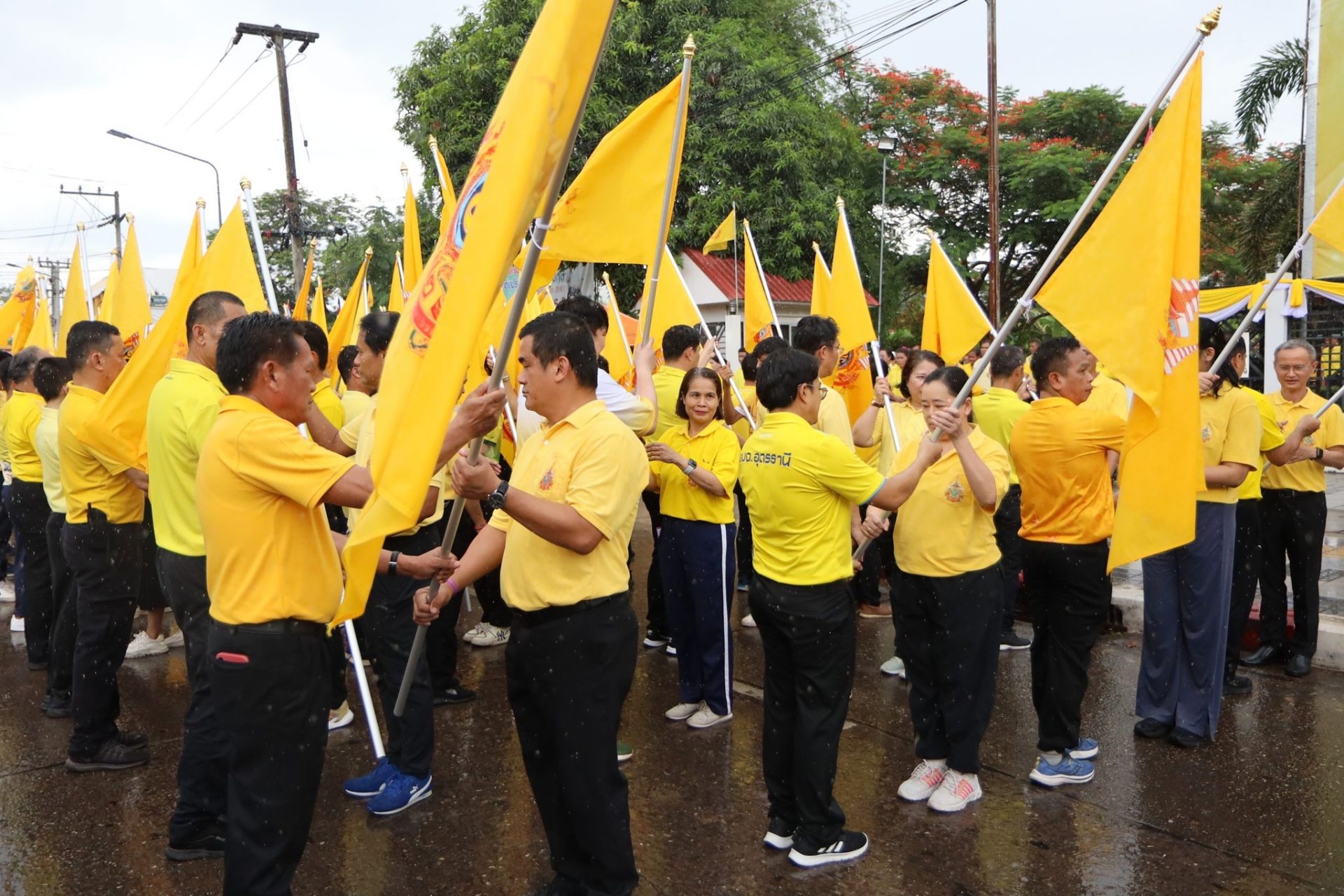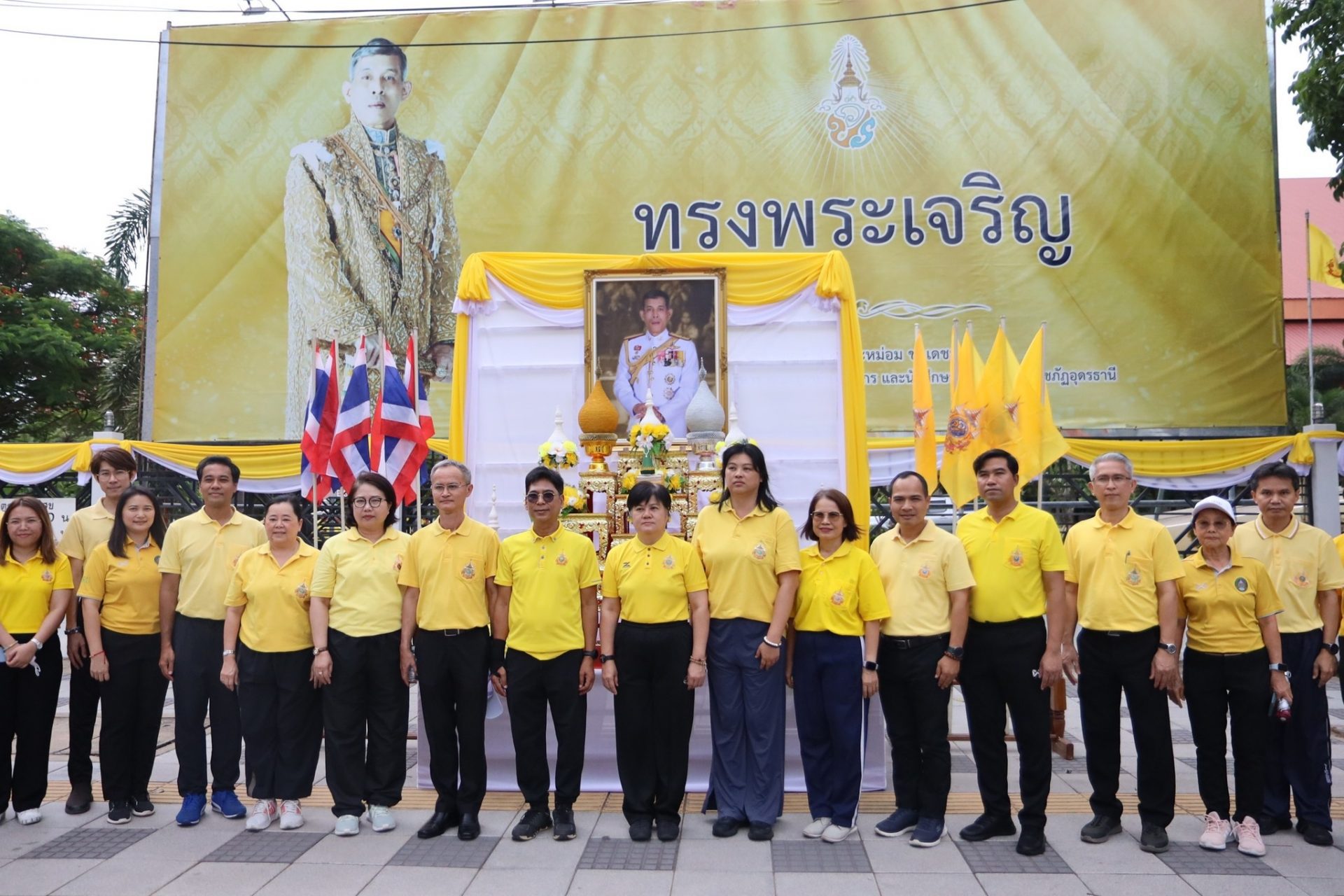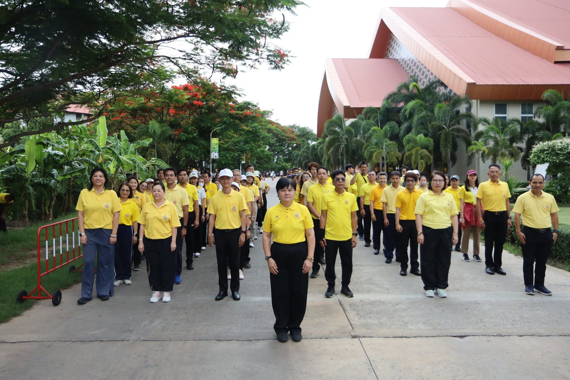 เวลา 14.00 น. ผศ.ดร.คณิศรา ธัญสุนทรสกุล อธิการบดี นำคณะผู้บริหาร อาจารย์ บุคลากร นักศึกษา เข้าร่วมพิธีรับมอบธง ตราสัญลักษณ์งานเฉลิมพระเกียรติพระบาทสมเด็จพระเจ้าอยู่หัว เนื่องในโอกาสพระราชพิธีมหามงคลเฉลิมพระชนมพรรษา 6 รอบ 28 กรกฎาคม 2567 โดยสวมใส่เสื้อเหลืองตราสัญลักษณ์ ร่วมกิจกรรมรับมอบธงตราสัญลักษณ์งานเฉลิมพระเกียรติฯ แสดงออกซึ่งความจงรักภักดี น้อมสำนึกในพระมหากรุณาธิคุณ พระบาทสมเด็จพระเจ้าอยู่หัว ตลอดจนเป็นการส่งเสริมการออกกำลังกาย เพื่อการมีสุขภาพพลานามัยที่สมบูรณ์แข็งแรงตามรอยพระบาทยาตราของพระบาทสมเด็จพระเจ้าอยู่หัว พระผู้ทรงเป็นหลักชัย เป็นต้นแบบ แก่พสกนิกรชาวไทยในการดูแลสุขภาพร่างกาย