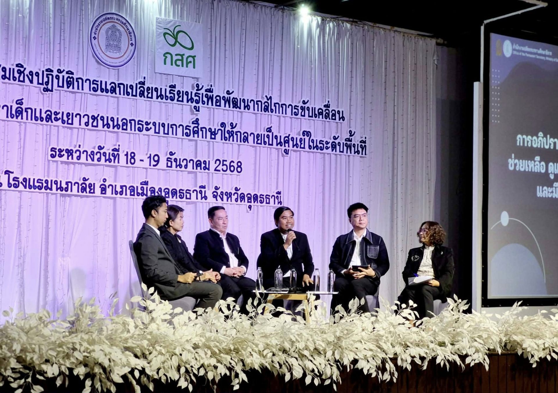 โดยมีผู้ร่วมเวทีอภิปราย ได้แก่ นางสรินยา บรรเลงรมย์ รองศึกษาธิการจังหวัดอุดรธานี, นายภาสกร เมิดจัน รองผู้อำนวยการสำนักงานส่งเสริมการเรียนรู้ประจำจังหวัดอุดรธานี, นายเอกลักษณ์ ศรีรงค์ ผู้แทนสำนักงานเขตพื้นที่การศึกษาประถมศึกษาอุดรธานี เขต 1 และนายอำนวย อินทรธิราช อดีตนายกองค์การบริหารส่วนตำบล ดำเนินรายการโดย ดร.นวลพรรณ วรรณสุธี อาจารย์มหาวิทยาลัยเจ้าพระยา