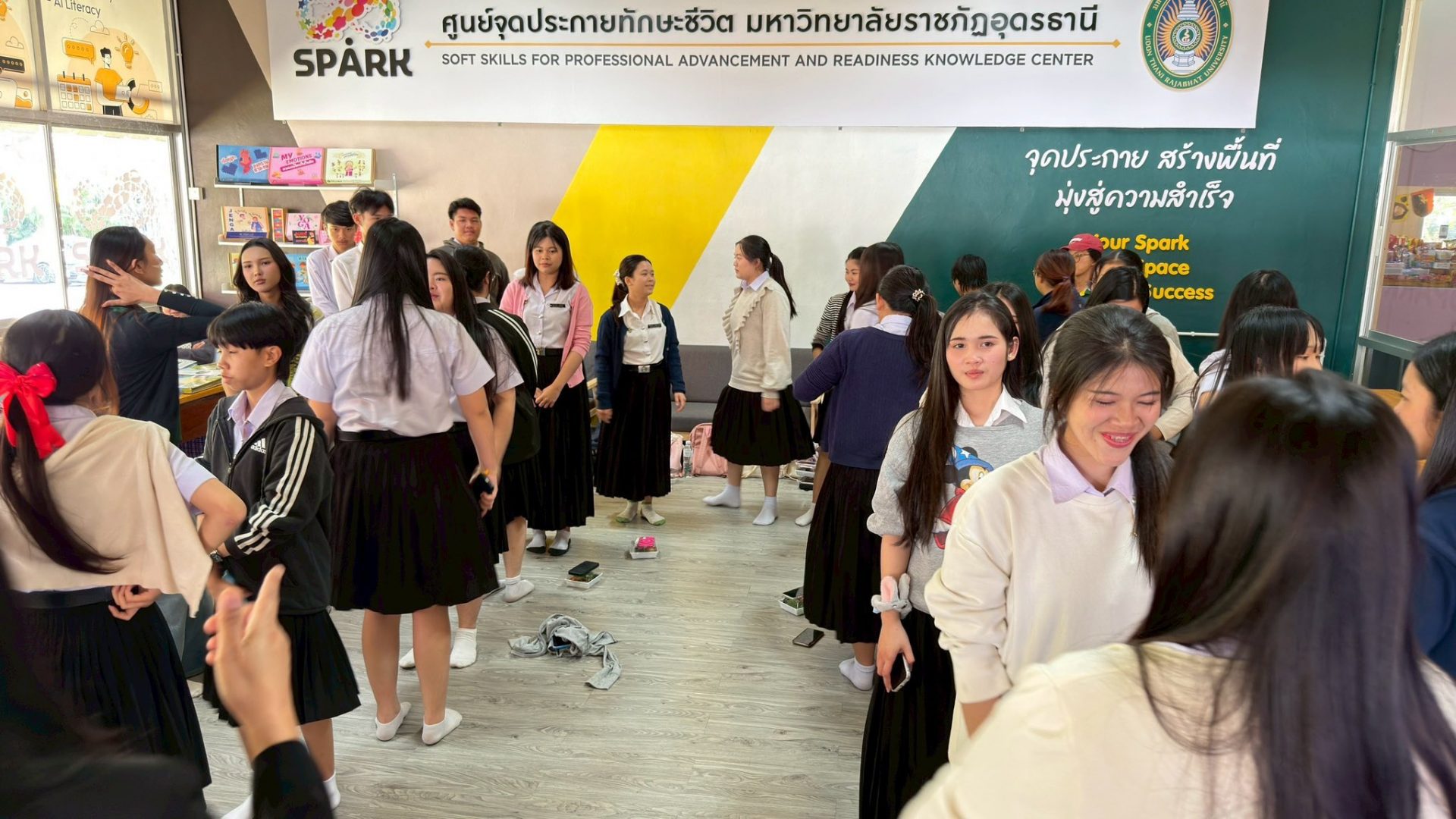 วันพุธที่ 4 กุมภาพันธ์ 2569 ชุมนุมสร้างสรรค์สื่อและสิ่งประดิษฐ์ ร่วมกับชุมนุมกรีนคลับ สำนักวิชาศึกษาทั่วไป มหาวิทยาลัยราชภัฎอุดรธานี ได้จัดโครงการ การผลิตสื่อสร้างสรรค์สู่การเรียนรู้ด้วยตนเอง “ศัพท์สร้างสื่อ หนังสือเล่มเล็ก” ณ ศูนย์จุดกายชีวิต (Spark Center) อาคาร 16 มหาวิทยาลัยราชภัฏอุดรธานี โอกาสนี้ได้รับเกียรติจาก อาจารย์นัฐฐิยา ฐิติเจริญธรรม รองผู้อำนวยการสำนักวิชาศึกษาทั่วไป เป็นประธานกล่าวเปิดโครงการ โดยมีผู้ช่วยศาสตราจารย์สุทธิวรรณ อินทะกนก เป็นผู้กล่าวรายงานวัตถุประสงค์ของการจัดโครงการ การจัดโครงการดังกล่าวมีวัตถุประสงค์เพื่อผลิตสื่อสร้างสรรค์หนังสือเล่มเล็กสู่การเรียนรู้ด้วยตนเอง ตลอดจนเสริมสร้างกระบวนการเรียนรู้ของผู้เรียนในการฝึกทักษะการวางแผน การตัดสินใจของตนเอง โดยเริ่มตั้งแต่การกำหนดประเด็นการเรียนรู้ การเลือกและคัดสรรคำศัพท์ที่เหมาะสม วิเคราะห์ความหมายและบริบทการใช้ ไปจนถึงการออกแบบและสร้างสื่อให้สอดคล้องกับเป้าหมายการเรียนรู้ ซึ่งเป็นการพัฒนาทักษะการเรียนรู้ด้วยตนเองอย่างยั่งยืน ทำให้ผู้เรียนสามารถนำองค์ความรู้ไปต่อยอดและประยุกต์ใช้ได้จริงในชีวิตประจำวันและการเรียนรู้ในอนาคตอย่างมีประสิทธิภาพ โดยมีรองศาสตราจารย์ธนัญญา ธีระอกนิษฐ์ และผู้ช่วยศาสตราจารย์ ดร. กานต์ณรัน สีหมากสุก ให้เกียรติเป็นวิทยากรในการอบรมในครั้งนี้ นอกจากนี้ยังมีอาจารย์ที่ปรึกษาชุมนุม ตลอดจนคณาจารย์และนักศึกษาเข้าร่วมโครงการจำนวน 40 คน 0 Tags: ผลิตสื่อสร้างสรรค์ศัพท์สร้างสื่อหนังสือเล่มเล็ก