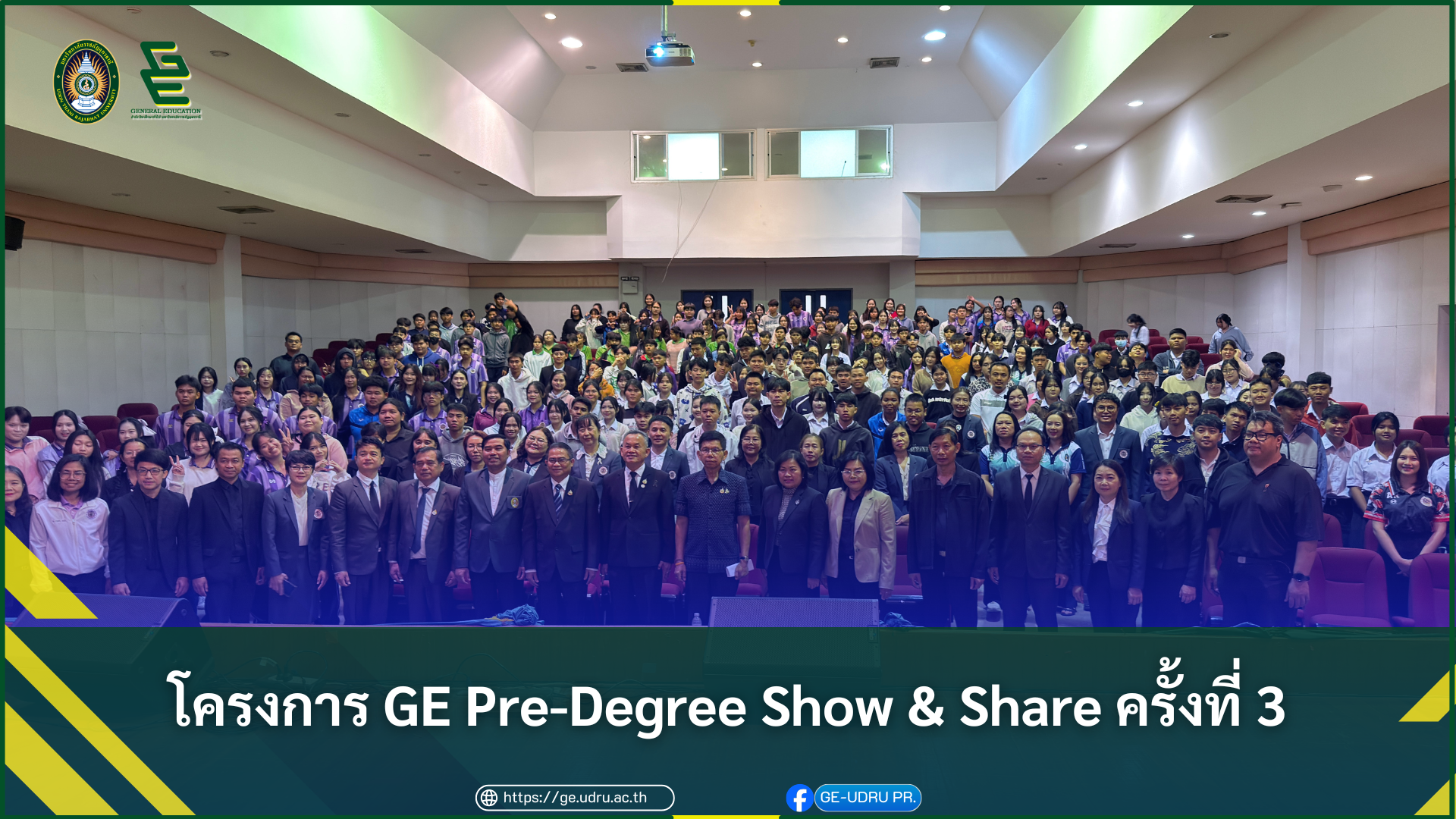 สำนักวิชาศึกษาทั่วไป มหาวิทยาลัยราชภัฏอุดรธานี ขับเคลื่อนระบบธนาคารหน่วยกิต (Credit Bank) เชื่อมโยงการเรียนล่วงหน้า Pre-Degree เสริมสร้าง Soft Skill ผู้เรียน ผ่านโครงการ GE Pre-Degree Show & Share ครั้งที่ 3