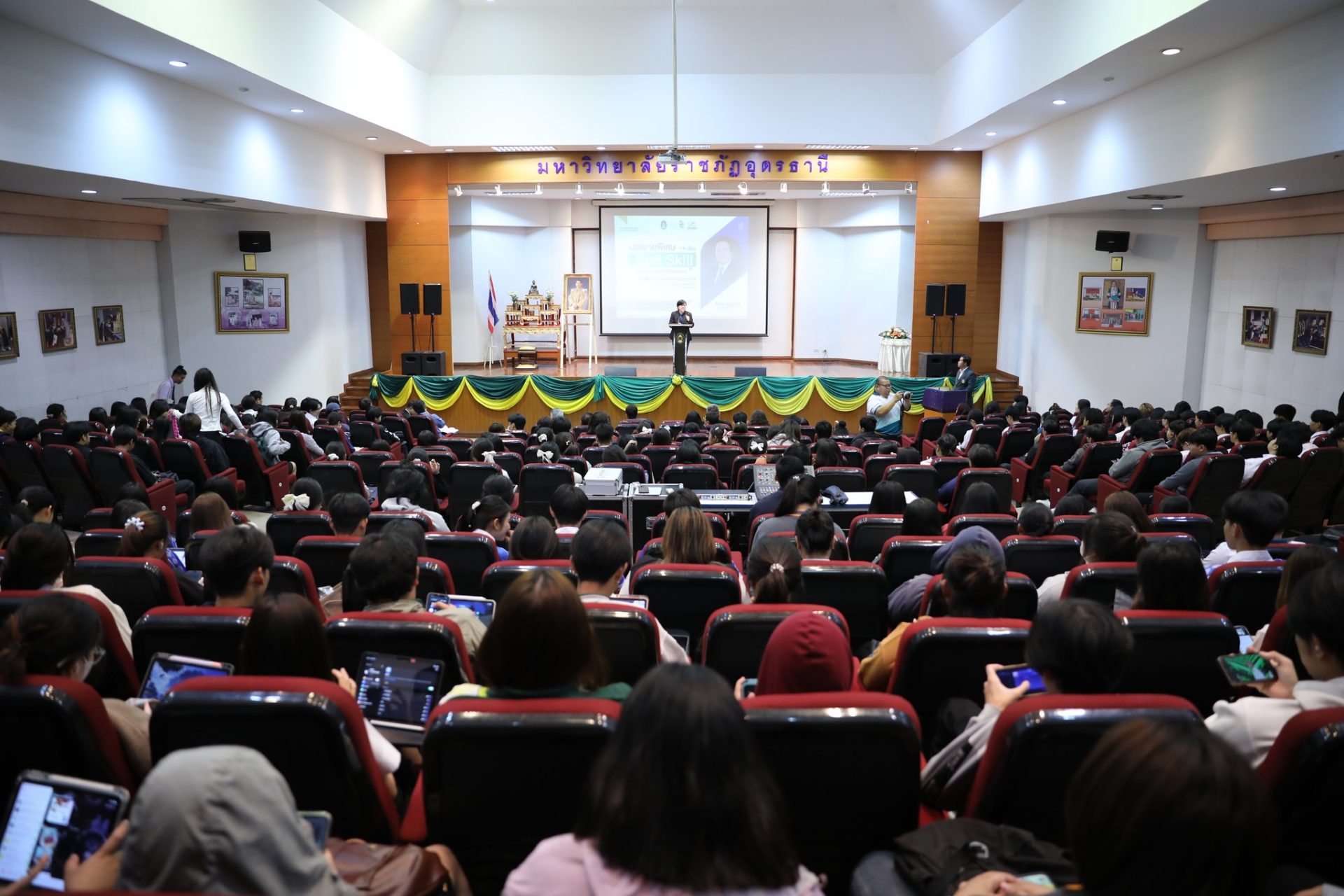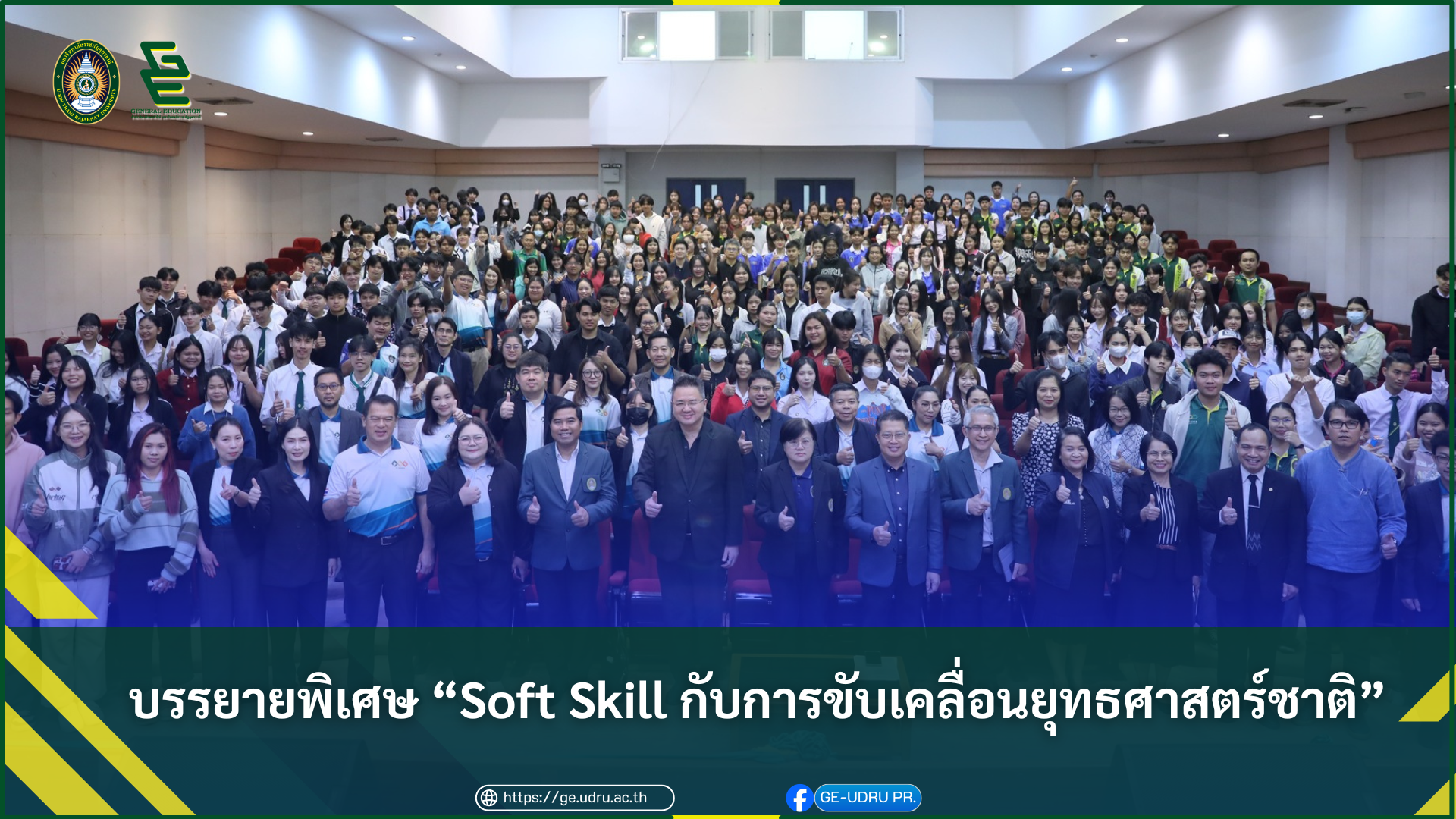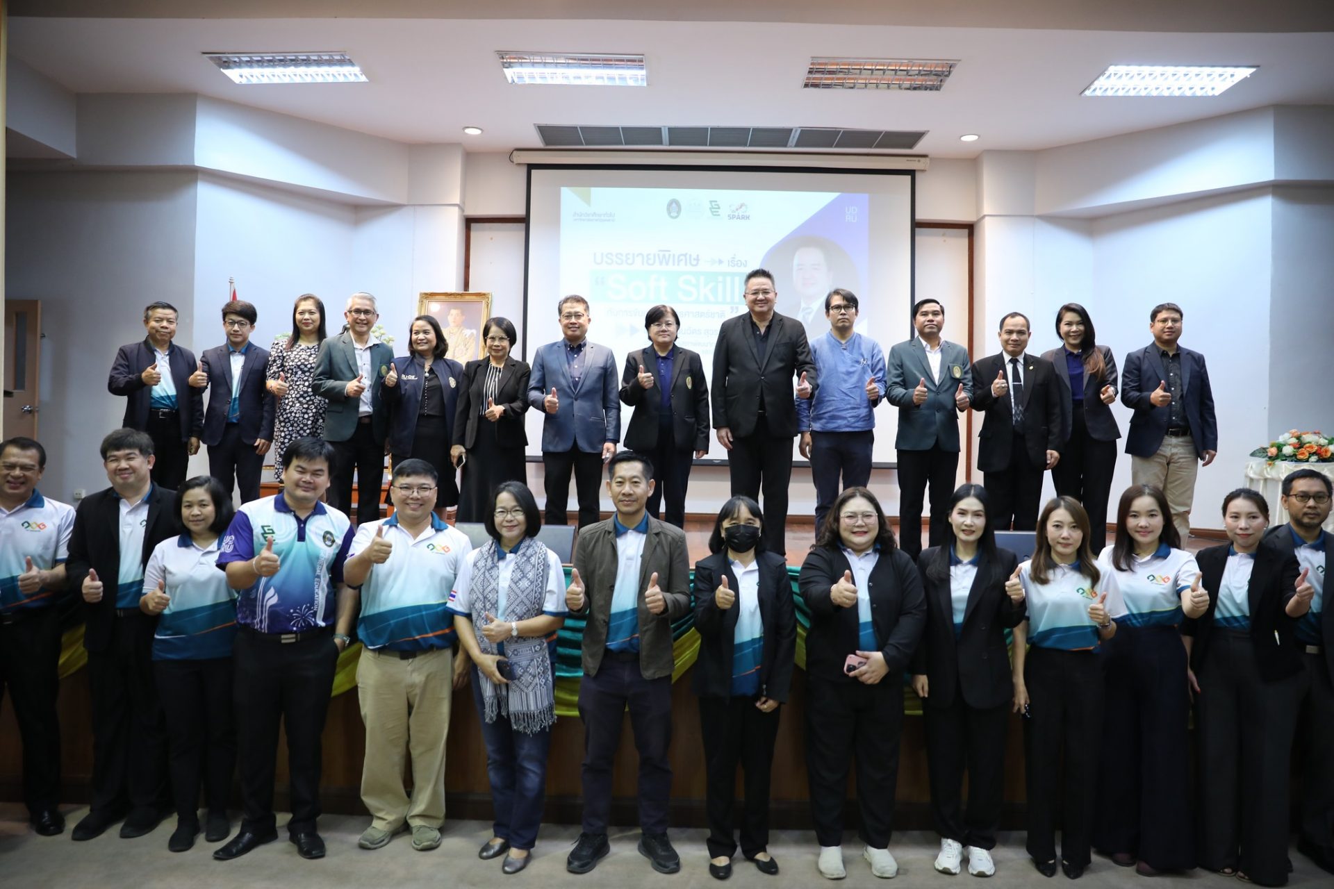 สำนักวิชาศึกษาทั่วไป มรภ.อุดรธานี จัดบรรยายพิเศษ “Soft Skill กับการขับเคลื่อนยุทธศาสตร์ชาติ” เสริมศักยภาพนักศึกษา วันที่ 11 กุมภาพันธ์ พ.ศ. 2569 ณ ห้องประชุม 1 อาคารเฉลิมพระเกียรติฯ สำนักวิชาศึกษาทั่วไป มหาวิทยาลัยราชภัฏอุดรธานี จัดการบรรยายพิเศษ เรื่อง “Soft Skill กับการขับเคลื่อนยุทธศาสตร์ชาติ” โดยได้รับเกียรติจาก นายวันฉัตร สุวรรณกิตติ รองเลขาธิการสภาพัฒนาการเศรษฐกิจและสังคมแห่งชาติ (สศช.) เป็นวิทยากรบรรยาย โดยมี ผู้ช่วยศาสตราจารย์ ดร.คณิศรา ธัญสุนทรสกุล รักษาราชการแทนอธิการบดีมหาวิทยาลัยราชภัฏอุดรธานี เป็นประธานกล่าวเปิดโครงการ การบรรยายพิเศษครั้งนี้จัดขึ้นเพื่อเสริมสร้างความรู้ความเข้าใจเกี่ยวกับบทบาทของ ทักษะ Soft Skill ในการพัฒนาทรัพยากรมนุษย์ ซึ่งถือเป็นกลไกสำคัญในการขับเคลื่อน ยุทธศาสตร์ชาติ 20 ปี โดยเฉพาะยุทธศาสตร์ด้านการพัฒนาและเสริมสร้างศักยภาพทรัพยากรมนุษย์ ให้มีสมรรถนะสอดคล้องกับความต้องการของประเทศในศตวรรษที่ 21 ทั้งนี้ การพัฒนา Soft Skill ยังมีส่วนสำคัญในการเตรียมความพร้อมผู้เรียนระดับอุดมศึกษาให้สามารถปรับตัวเข้าสู่ตลาดแรงงาน และรองรับการเปลี่ยนแปลงของโครงสร้างเศรษฐกิจและสังคม ภายใต้นโยบาย Thailand 4.0 ที่มุ่งเน้นเศรษฐกิจฐานนวัตกรรม การเรียนรู้ตลอดชีวิต และการพัฒนากำลังคนให้มีความคิดสร้างสรรค์ ทักษะการสื่อสาร การทำงานเป็นทีม และคุณธรรมจริยธรรม อันจะนำไปสู่การพัฒนาประเทศอย่างมั่นคง มั่งคั่ง และยั่งยืน ภายหลังพิธีเปิดโครงการ ประธานในพิธีและคณะผู้บริหารได้ร่วมเยี่ยมชมกิจกรรม “โครงการบอร์ดเกมส์เพื่อพัฒนาทักษะชีวิต : เล่นเพลิน Learn Soft Skills” ณ ศูนย์จุดประกายทักษะชีวิต (SPARK Center) ซึ่งเป็นกิจกรรมที่ส่งเสริมการเรียนรู้ผ่านกระบวนการเล่นและการมีส่วนร่วมของผู้เรียน เพื่อพัฒนาทักษะชีวิตและ Soft Skill อย่างสร้างสรรค์ 1 Tags: Soft Skillบรรยายพิเศษยุทธศาสตร์ชาติ