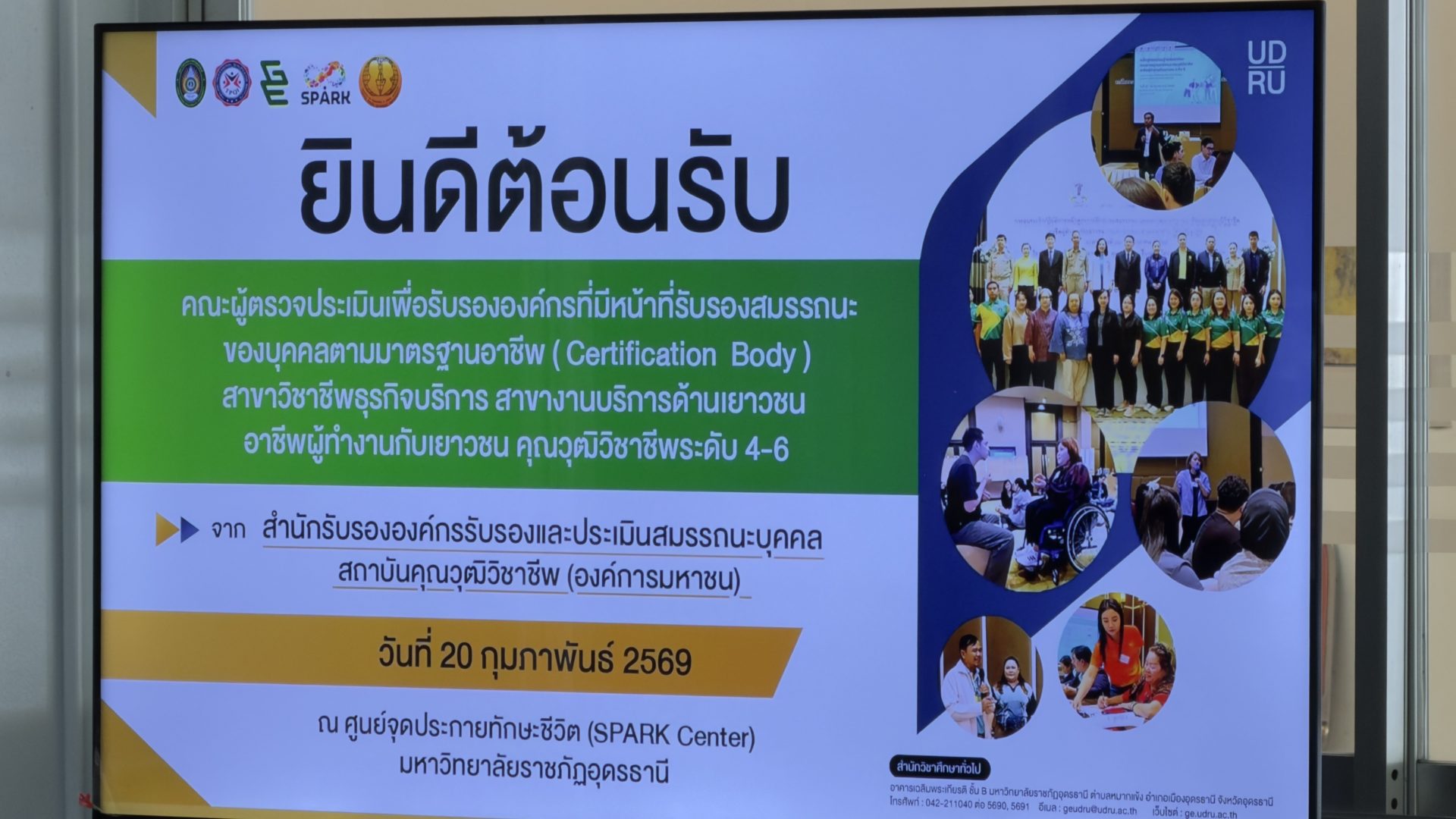 สำนักวิชาศึกษาทั่วไป มหาวิทยาลัยราชภัฏอุดรธานี เข้ารับการตรวจประเมินองค์กรรับรองสมรรถนะบุคคลตามมาตรฐานอาชีพ วันที่ 20 กุมภาพันธ์ 2569 ผู้บริหาร คณาจารย์ และเจ้าหน้าที่สำนักวิชาศึกษาทั่วไป มหาวิทยาลัยราชภัฏอุดรธานี เข้ารับการตรวจประเมินเพื่อรับรองเป็นองค์กรที่มีหน้าที่รับรองสมรรถนะบุคคลตามมาตรฐานอาชีพ (Certification Body) ในสาขาวิชาชีพธุรกิจบริการ อาชีพผู้ทำงานกับเยาวชน ระดับ 4–6 จาก สถาบันคุณวุฒิวิชาชีพ (องค์การมหาชน) โดยบูรณาการความร่วมมือกับคณะมนุษยศาสตร์และสังคมศาสตร์ และภาคีเครือข่ายภายนอกที่เกี่ยวข้อง ในการนี้ ผศ.ดร.อภิรักษ์ ลอยแก้ว รองอธิการบดี ให้เกียรติกล่าวต้อนรับคณะกรรมการประเมินทั้ง 5 ท่าน พร้อมทั้ง ผศ.ดร.เกรียงไกร ธุระพันธ์ ได้นำเสนอข้อมูลภาพรวมองค์กร ความเป็นมา และบทบาทของมหาวิทยาลัยในการขับเคลื่อนงานด้านการพัฒนาเยาวชน รวมถึงการพัฒนาระบบสนับสนุนกำลังคนเชิงสมรรถนะที่เชื่อมโยงกับบริบทพื้นที่ด้าน ผศ.วรวัฒน์ ทิพจ้อย ผู้อำนวยการสำนักวิชาศึกษาทั่วไป ได้นำเสนอความพร้อมของหน่วยงาน ทั้งโครงสร้างการดำเนินงาน กระบวนการประเมินสมรรถนะ ศักยภาพบุคลากร ระบบบริหารจัดการ และจุดเด่นของมหาวิทยาลัยในการก้าวสู่การเป็นองค์กรรับรองสมรรถนะบุคคลตามมาตรฐานอาชีพอย่างเป็นระบบและได้มาตรฐาน พร้อมทั้งนำเสนอแผนการประเมินสมรรถนะ ประจำปีงบประมาณ 2569 เพื่อรองรับการดำเนินงานอย่างมีประสิทธิภาพ การเป็นองค์กรรับรองสมรรถนะบุคคลตามมาตรฐานอาชีพ ถือเป็นกลไกสำคัญในการยกระดับกำลังคนไทย โดยมุ่งเน้น “สมรรถนะการปฏิบัติงานจริง” มากกว่าการพิจารณาจากวุฒิการศึกษาเพียงอย่างเดียว สอดคล้องกับแนวคิดการเรียนรู้ตลอดชีวิต (Life-long Learning) และการพัฒนาทักษะตามมาตรฐานอาชีพที่ได้รับการยอมรับทั้งในและต่างประเทศ การเข้ารับการตรวจประเมินในครั้งนี้ นับเป็นอีกก้าวสำคัญของสำนักวิชาศึกษาทั่วไป ในการขยายบทบาทของมหาวิทยาลัยสู่การเป็นกลไกสนับสนุนการพัฒนาทรัพยากรมนุษย์บนฐานสมรรถนะ สร้างโอกาสทางอาชีพ เพิ่มขีดความสามารถในการแข่งขัน และยกระดับคุณภาพแรงงานไทยอย่างยั่งยืน 6 Tags: Certification Bodyประเมินองค์กรมาตรฐานอาชีพ