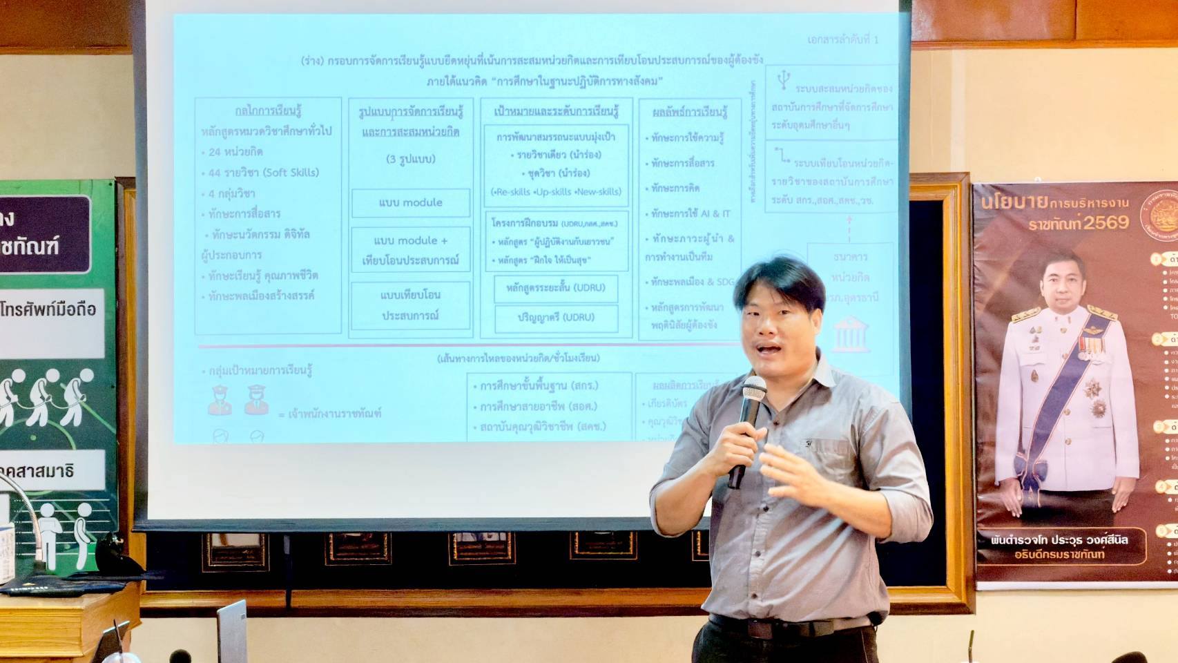 วันที่ 9 เมษายน 2569 ณ ห้องประชุมชั้น 2 เรือนจำกลางอุดรธานี ผศ.วรวัฒน์ ทิพจ้อย ผู้อำนวยการสำนักวิชาศึกษาทั่วไป พร้อมด้วย ดร.จุฬาวดี มีวันคำ รองผู้อำนวยการสำนักฯ คณาจารย์ และคณะทำงานโครงการนวัตกรรมการจัดการเรียนรู้แบบยืดหยุ่น เข้าร่วมประชุมแลกเปลี่ยนกรอบการจัดการเรียนรู้แบบยืดหยุ่นสำหรับผู้ต้องขัง โดยมุ่งเน้นระบบการสะสมหน่วยกิต (Credit Bank) และการเทียบโอนประสบการณ์ เพื่อสนับสนุนการเรียนรู้ตลอดชีวิต